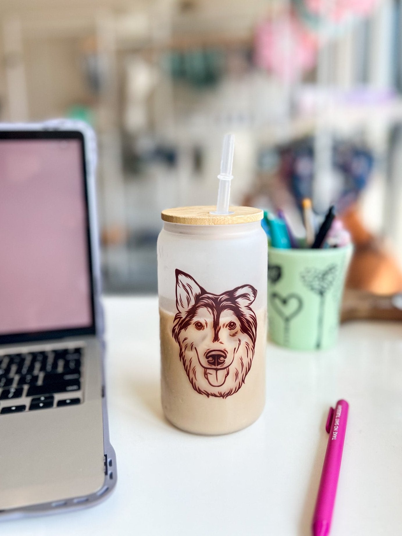 16oz frosted glass tumbler that is perfect for your iced coffee or preferred drink! Includes bamboo lid and a straw - the type of straw you receive may vary. Handwash to keep your design looking awesome!