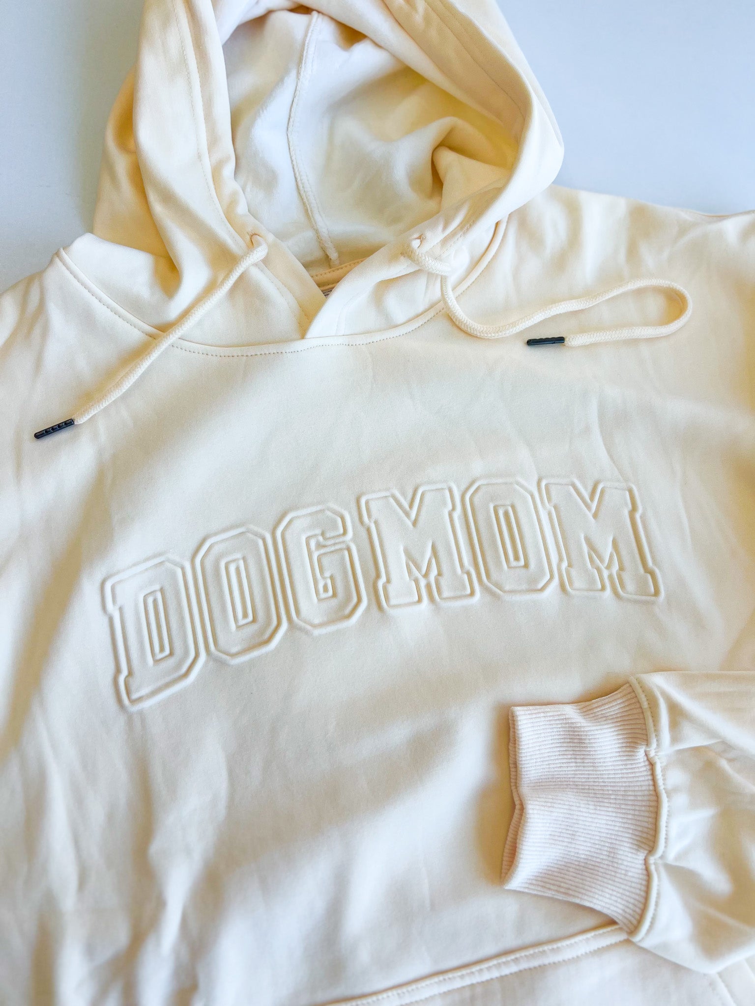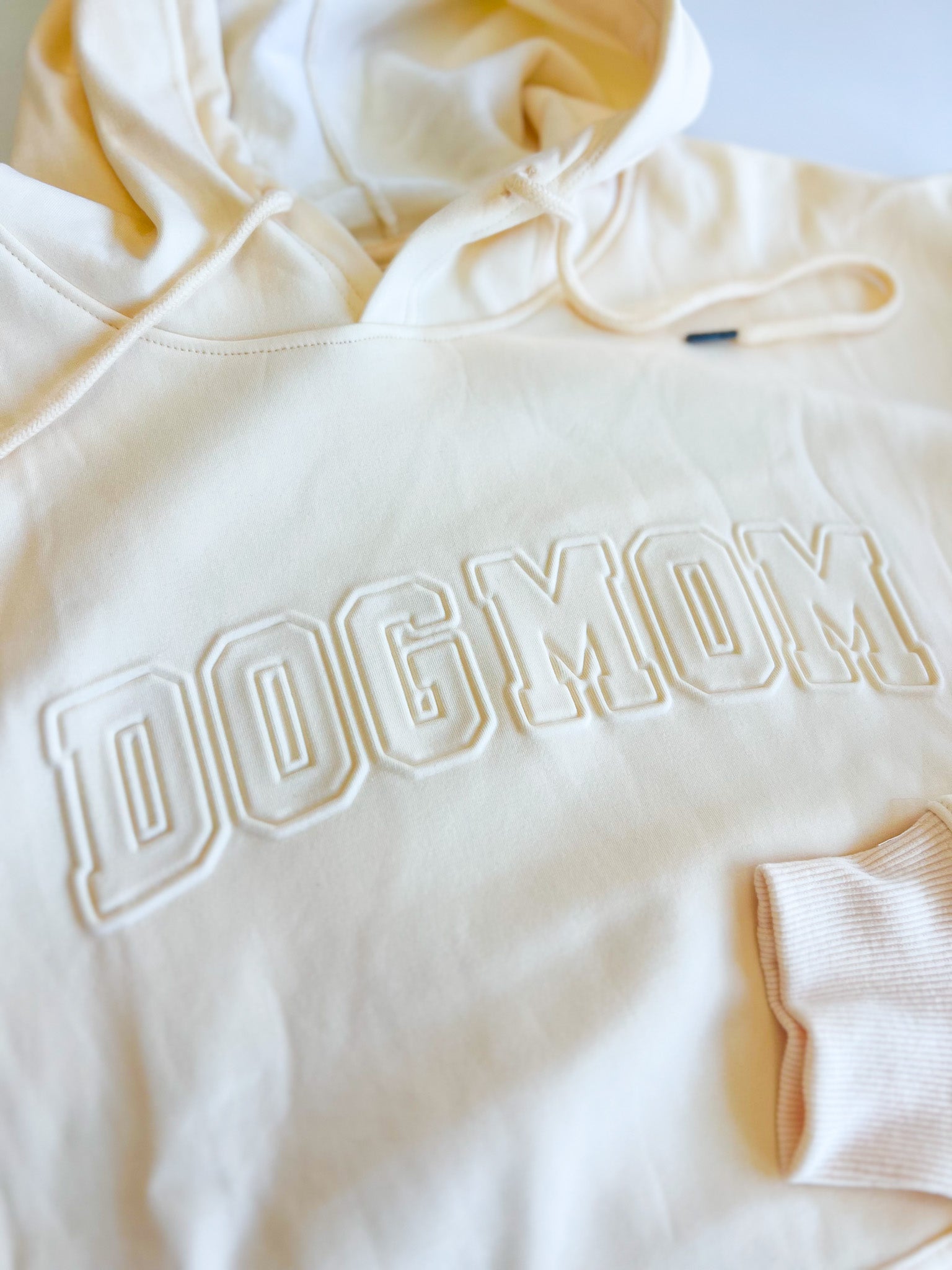 Cream Embossed Dog Mom Velvet Lined Hoodie