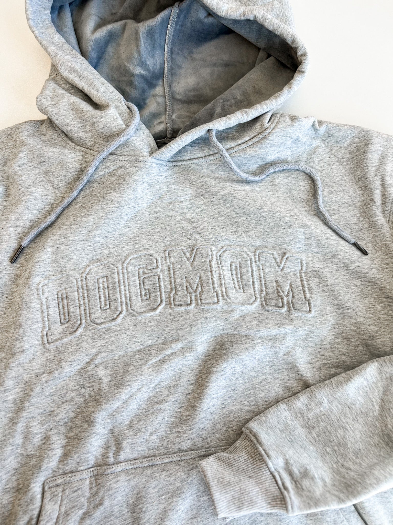 Gray Embossed Dog Mom Velvet Lined Hoodie