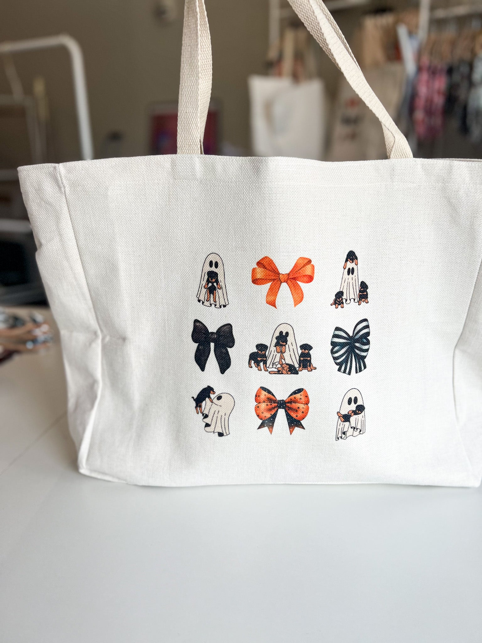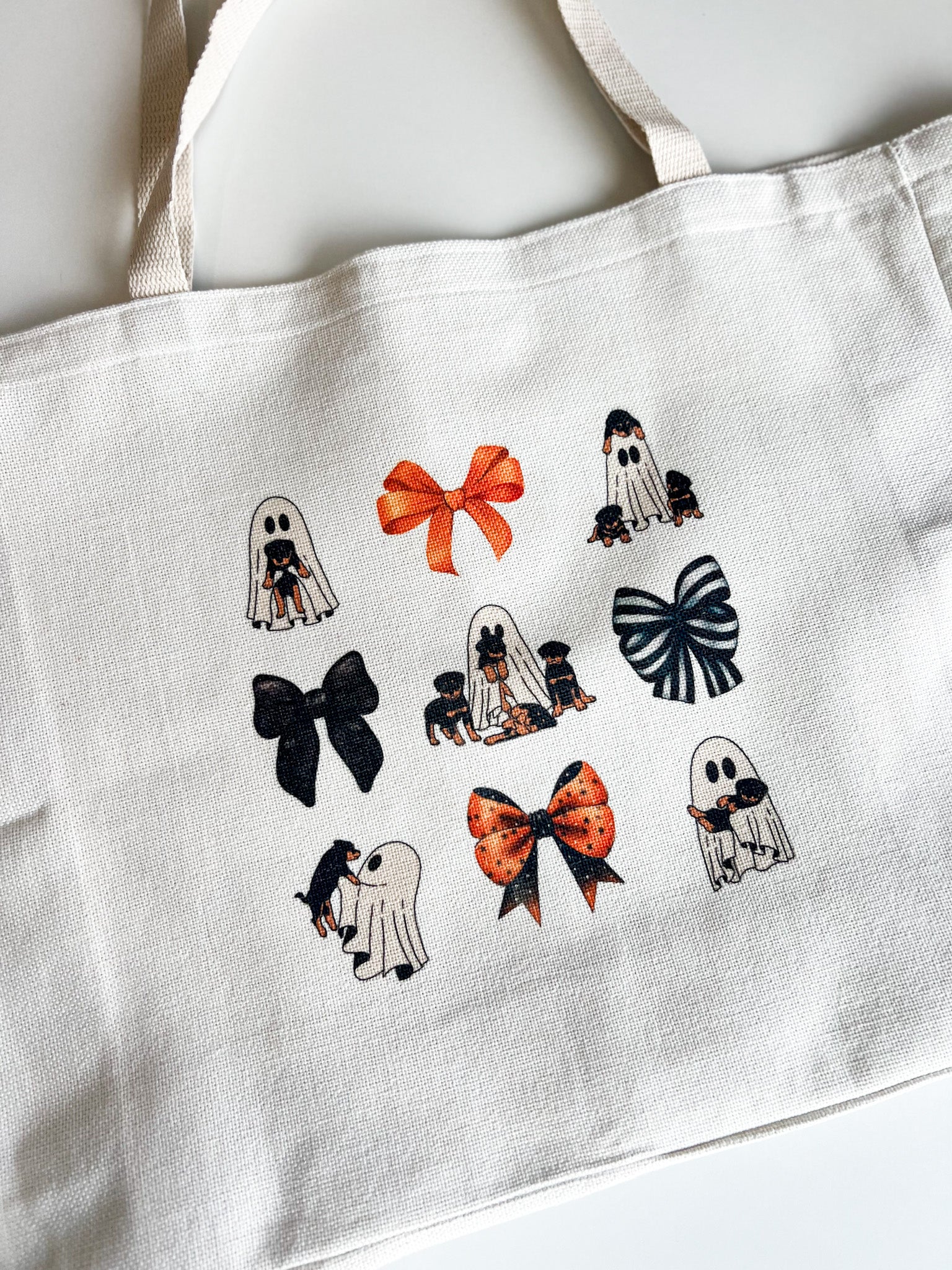 Your new favorite oversized tote bag with the cutest ghosts with puppies design!