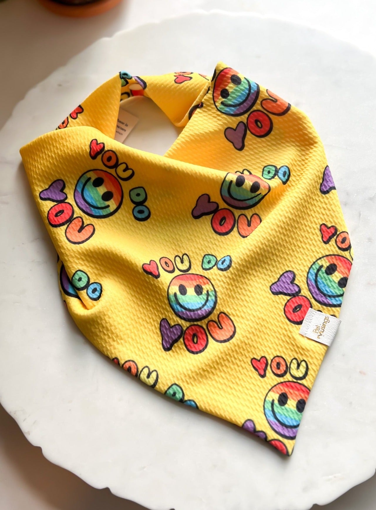 Machine wash cold and dry low heat. Be mindful not to leave your pets unattended with their bandana on.