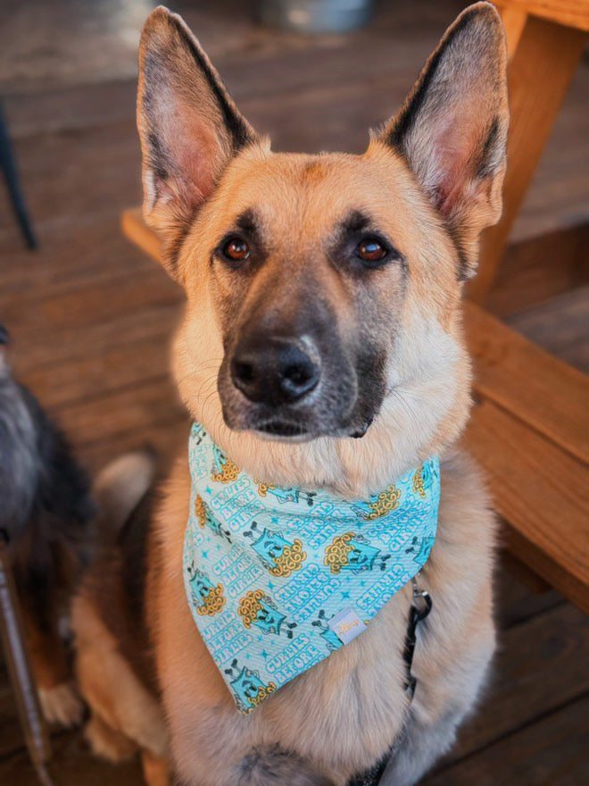 Machine wash cold and dry low heat. Be mindful not to leave your pets unattended with their bandana on.