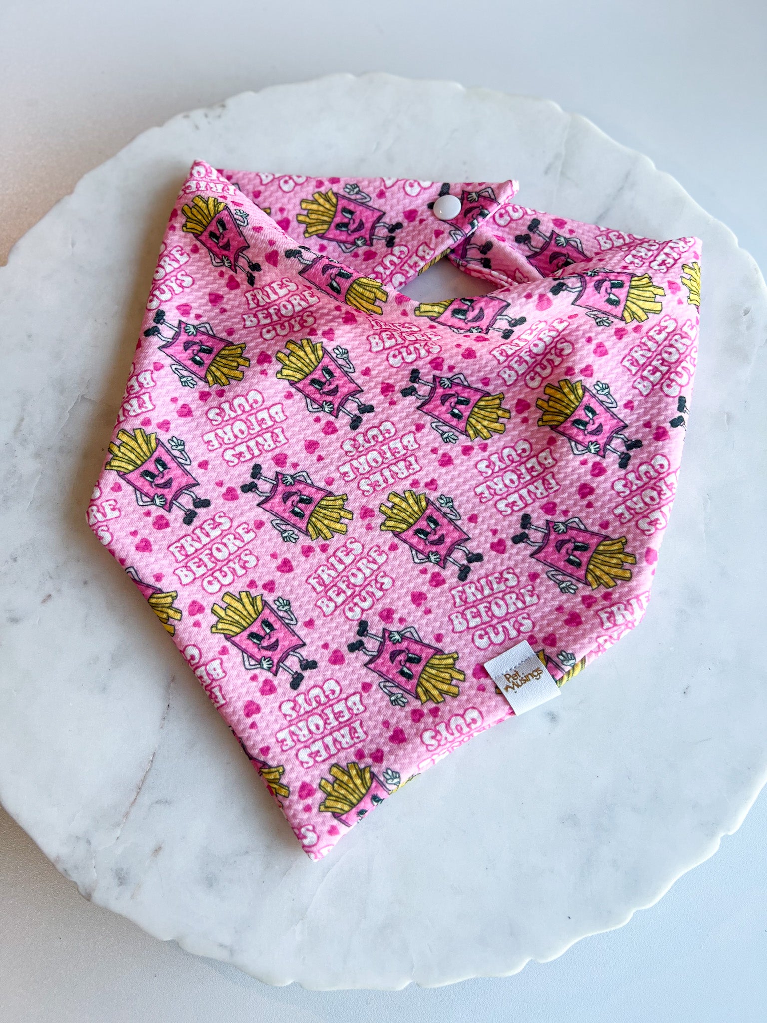 Machine wash cold and dry low heat. Be mindful not to leave your pets unattended with their bandana on.