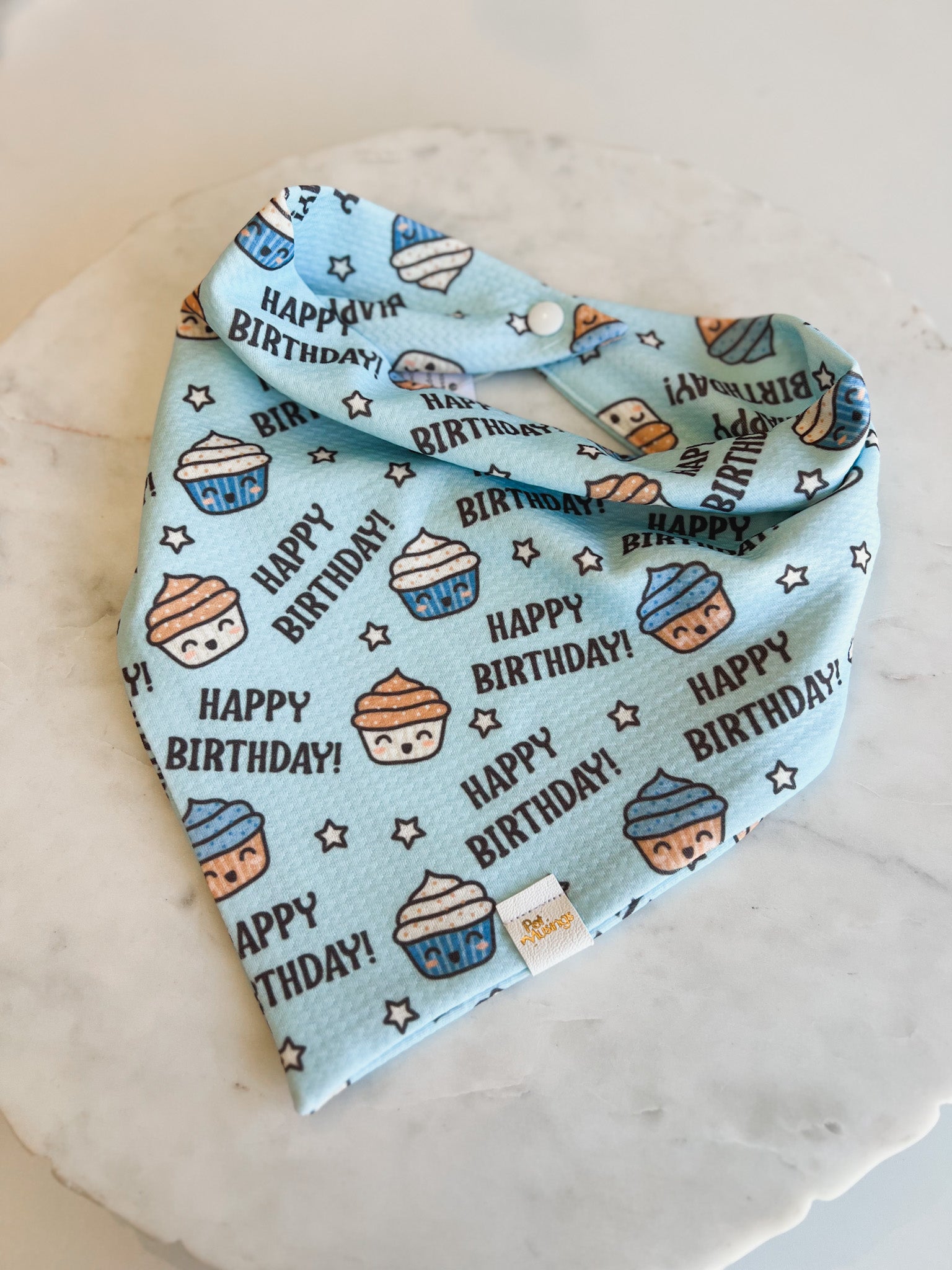 Happy Birthday Blue Cupcake Wrinkle Resistant Bandana