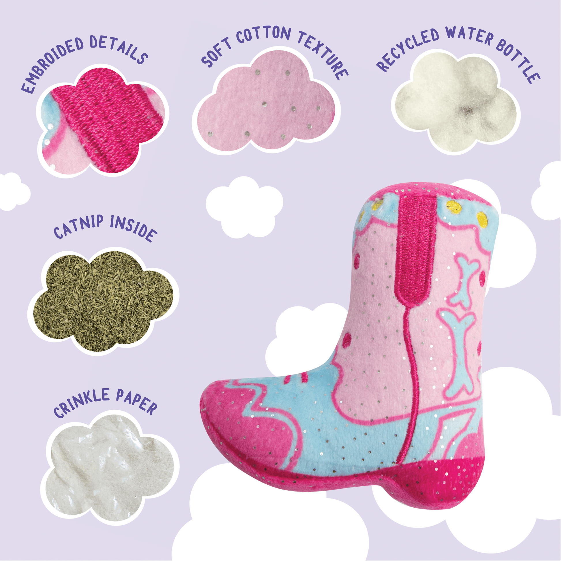 Step into the Wild West with the Kitty 2 Boot with Catnip – A Rootin’ Tootin’ Good Time for Your Feline! Giddy up, kitty! The Snugarooz "Kitty 2 Boot with Catnip" plush toy is here to bring some western flair to your cat’s playtime. Shaped like a cute and colorful cowboy boot, this toy is filled with irresistible catnip to keep your feline friend entertained for hours. Crafted from soft, durable materials with a touch of sparkle, this boot is perfect for batting, kicking, and pouncing. Whether your kitty is a seasoned cowpoke or just a little ranch hand, the "Kitty 2 Boot" toy will have them roping in the fun in no time. Let your cat strut their stuff and embrace their inner cowboy or cowgirl with the "Kitty 2 Boot with Catnip" toy. Because every kitty deserves a little bit of western adventure in their day!
