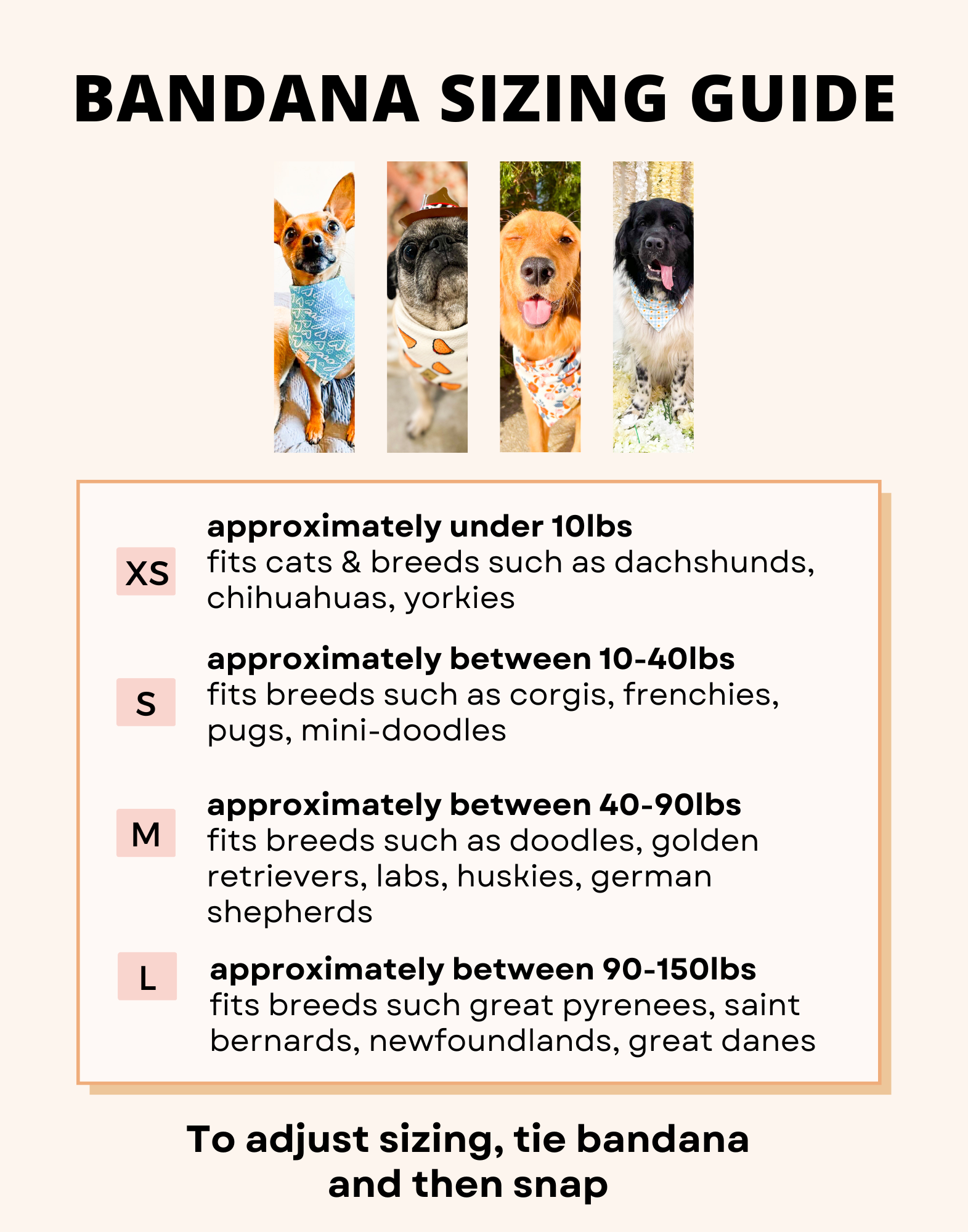 Bandana is triangle style with a snap. Snap on or tie and snap to adjust sizing. Wrinkle & hair resistant, soft and stretchy, durable, machine washable, and just plain adorable. Design and placement will have slight differences.