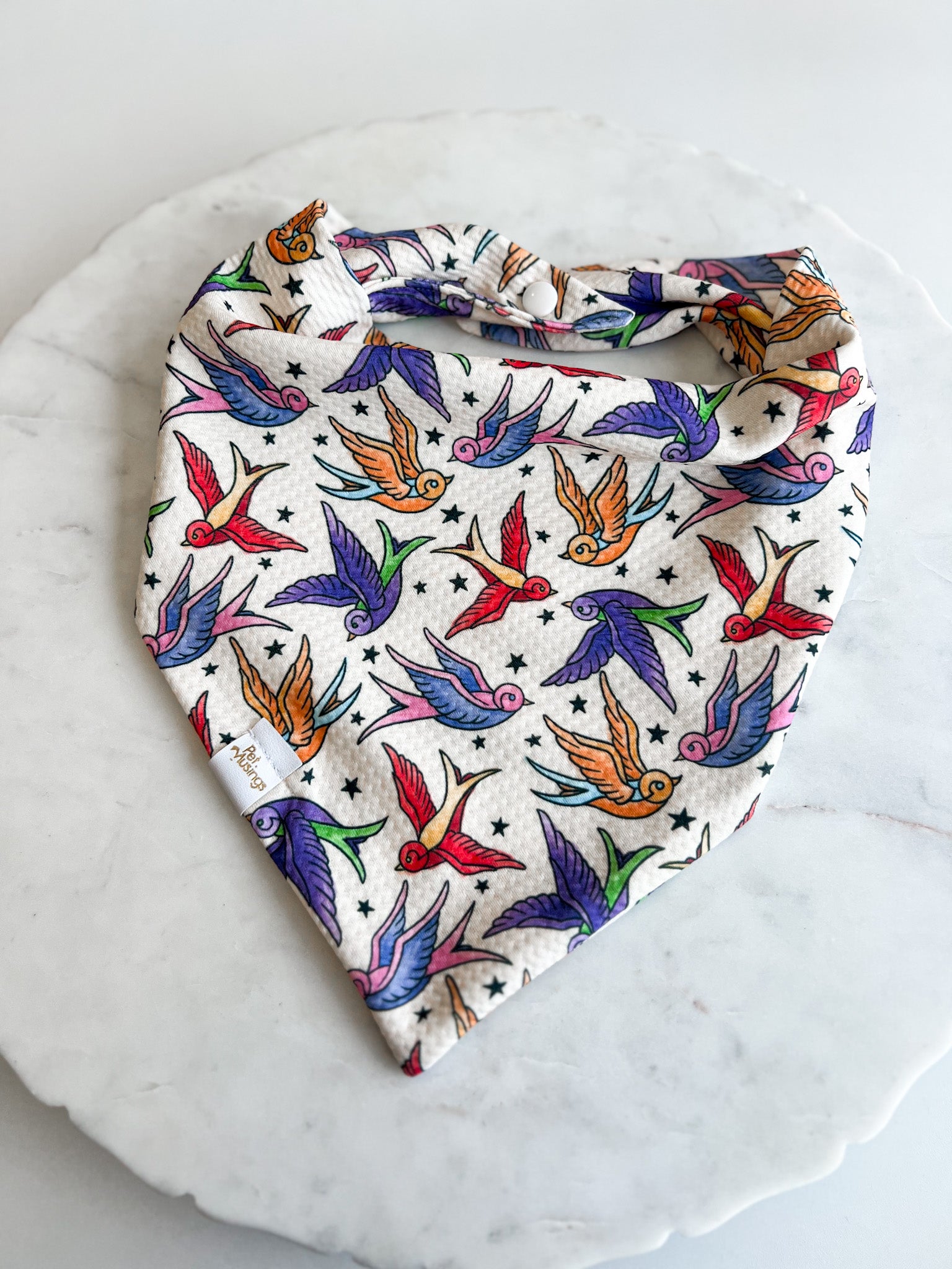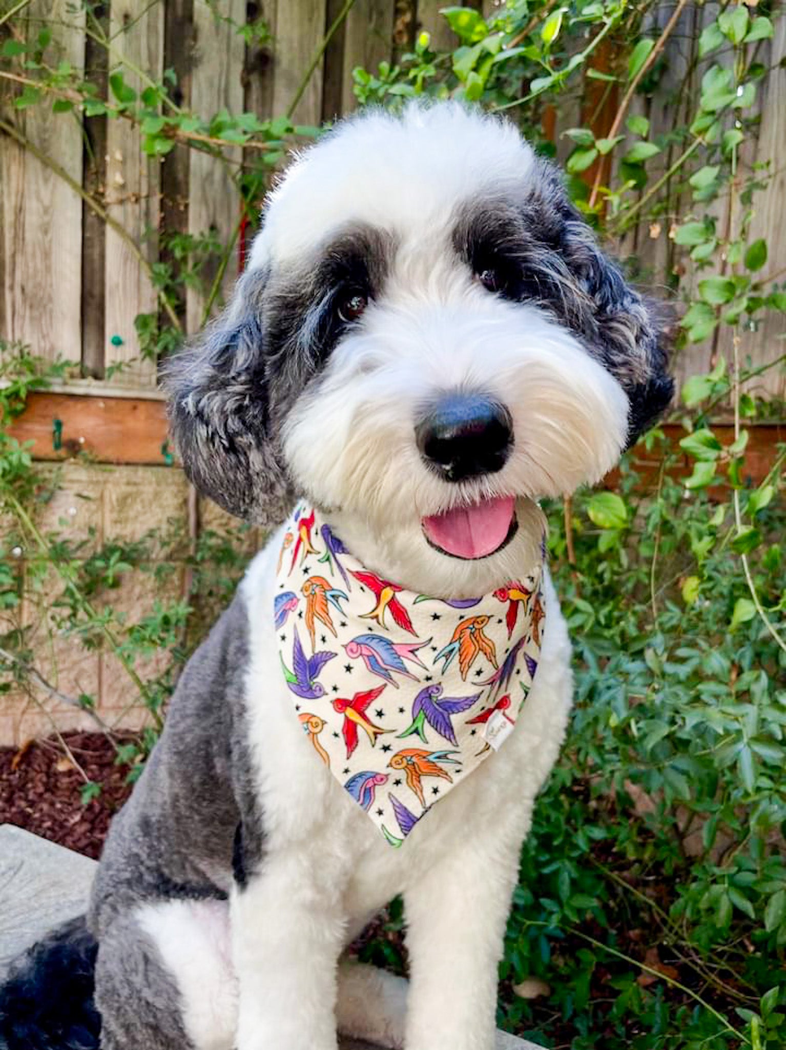 Machine wash cold and dry low heat. Be mindful not to leave your pets unattended with their bandana on.